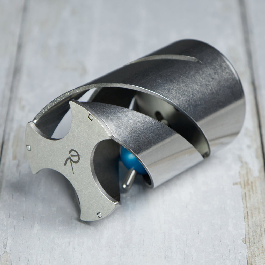 The elegant cage forms an unusual “open” shape of three expanding spirals. The hedgehog has an atypical number of five spikes, while two of them are a part of the amazing teardrop-shaped ball. In addition to the groundbreaking design of the cage and the hedgehog, this puzzle also brings a new unique principle. Compared to the traditional Hedgehog in the cage, you'll have to come up with different tricks which will help you to get a little further to the solution.